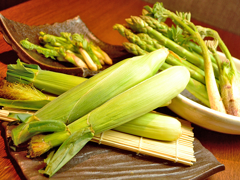 残雪をかき分けて顔を出す山菜は、早春の自然からの贈り物。素材の味を素直に引き出す料理を身上とする同店では、天ぷらで提供しています。