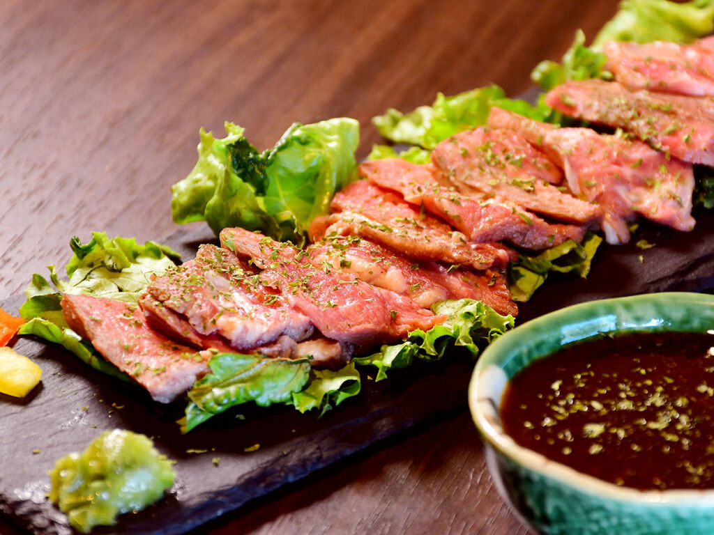 肉は鮮度の良さを物語るように艶やかで、しっとりとやわらかな食感です。外側にほんのりと焼き目をつけたことで活性化された旨みが噛むごとに広がり、玉ねぎベースのコクのあるシャリアピンソースが肉の甘みと風味をさらに高めています。途中、添えられた刻みわさびを乗せて味変も。ピリッと爽やかな刺激が心地よく、う~ん、これはハイボールやビールが合いそうだぞ…。オーナーの宮田悠慎さんは「おいしさも栄養面も優れた道産食材。たくさんの方に味わっていただきたいです」と、明るい笑顔で語ります。一人前1200円。