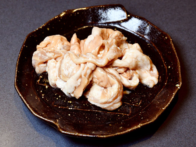 名物は、入店するとまず登場するお通しの醤油ホルモン。甘めの醤油ダレと、噛むほどに広がるホルモンの旨みが絶妙です。追加注文が入るほど人気の一品で、お土産用も店頭で販売中 店舗情報