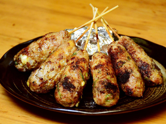 先代店主が考案し、好評を得て定番入りしたメニュー。右から2本ずつ、鶏ひき肉に特製のカレー粉をたっぷり練り込んだカレーつくね、そこにチーズを合わせたまろやかなカレーチーズつくね、さらに軟骨も混ぜ合わせた食感も楽しいカレーチーズ軟骨つくね。作り置きはせず、注文が入ってからタネを丸めて串打ちします。備長炭でじっくり焼けば、外は香ばしく中はしっとりジューシー。スパイスの香りと辛みが、次のひと口を誘います。2本で649~682円。どうぞ食べ比べてみて。