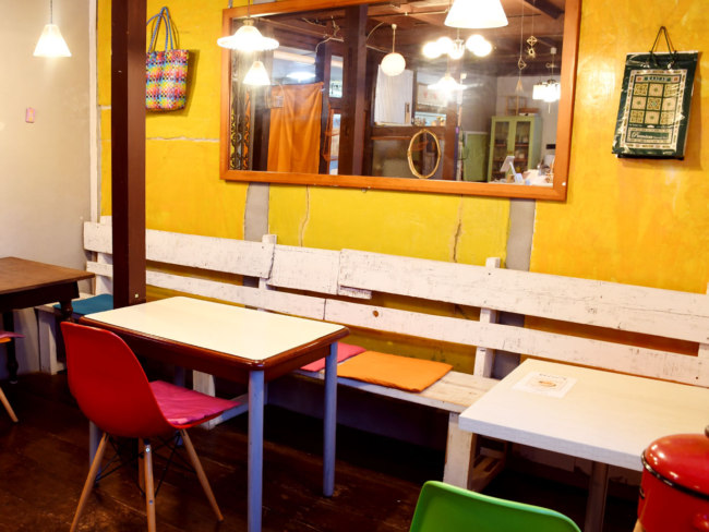 冬の寒さを忘れてしまいそうなほど、カラフルで明るい店内。深い緑と独特の模様が印象的なバスマティライスの袋(壁にかかっている紙袋)は、インテリアにしてしまうほどお気に入りです 店舗情報