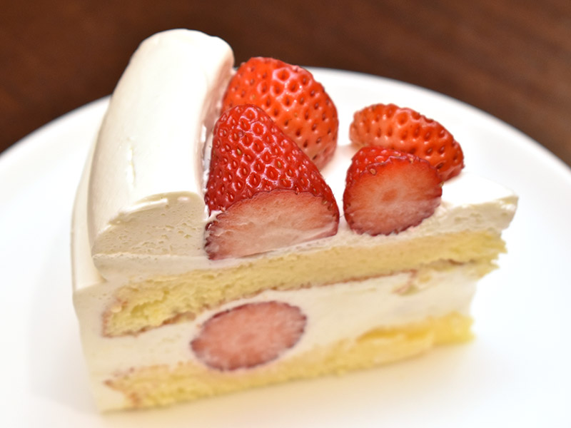 国産の大ぶりいちごがゴロゴロ入った贅沢ショート。ふわふわ生地と甘さ控えめ生クリームのバランスも抜群。