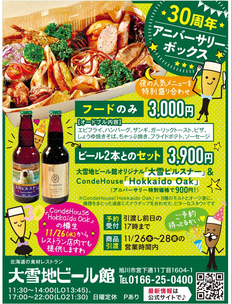 築100年の上川倉庫を改築して作られた席数180のレストラン。北海道のすぐれた食材をふんだんに提供しています。又併設の地ビール製造工場では常時4~5種類のビールを製造しており、ジャパンビアグランプリ他多数のビールコンペティションに入賞をはたしております。