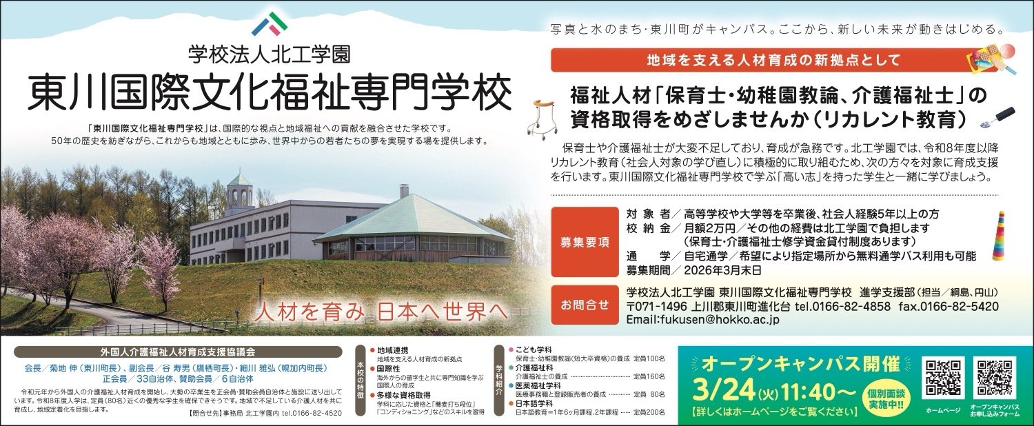 学校法人北工学園 東川国際文化福祉専門学校の関連情報