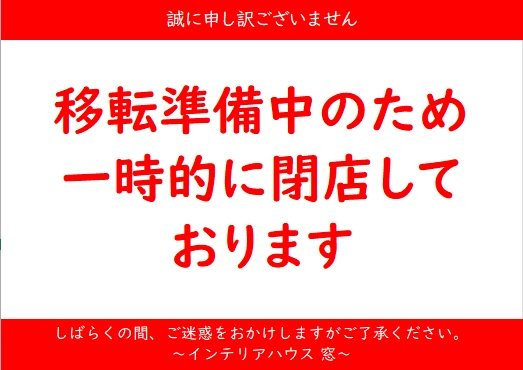 誠に勝手ながら、ショールーム移転準備のため、一時閉店をさせていただきます。