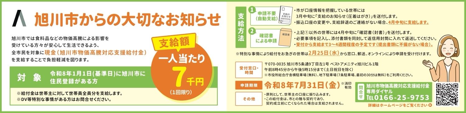 - 旭川市からの大切なお知らせ(旭川市物価高騰対応支援給付金)